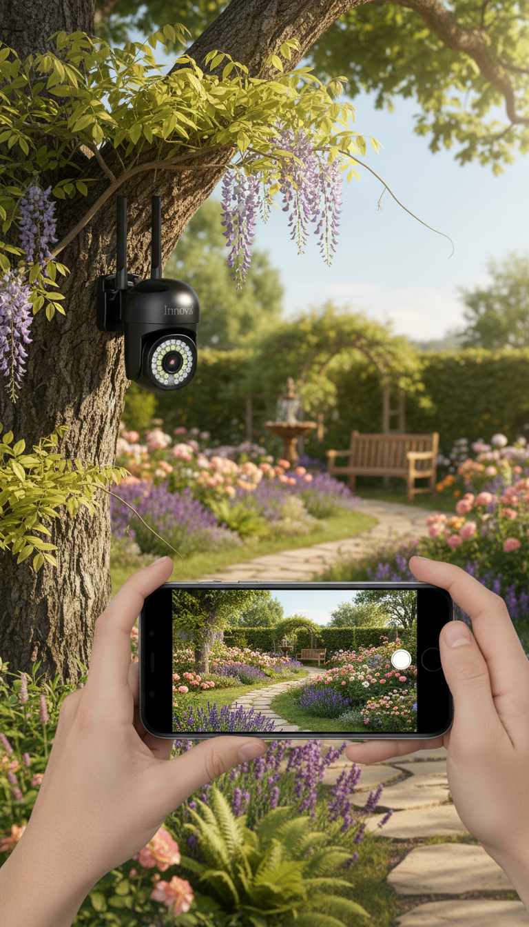 Cameră de Supraveghere Innova WIFI, 36 LED-uri, HD, Viziune Nocturnă cu Infraroșu și Protecție IP66 + Card Cadou