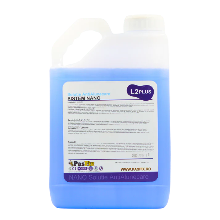 PasFix L2 PLUS 5L este o soluție antialunecare de înaltă performanță, destinată pentru bucătării, băi, birouri și coridoare școlare. Produsul a fost testat și certificat în Europa și SUA pentru aderență și siguranță chimică, fiind 100% non-toxic și sigur chiar și pentru familii cu copii sau animale.